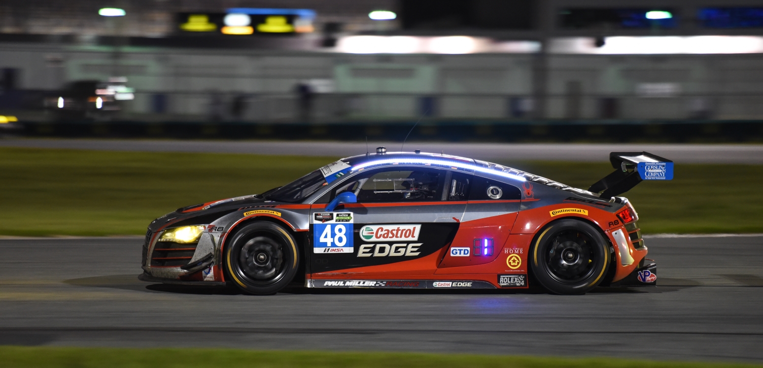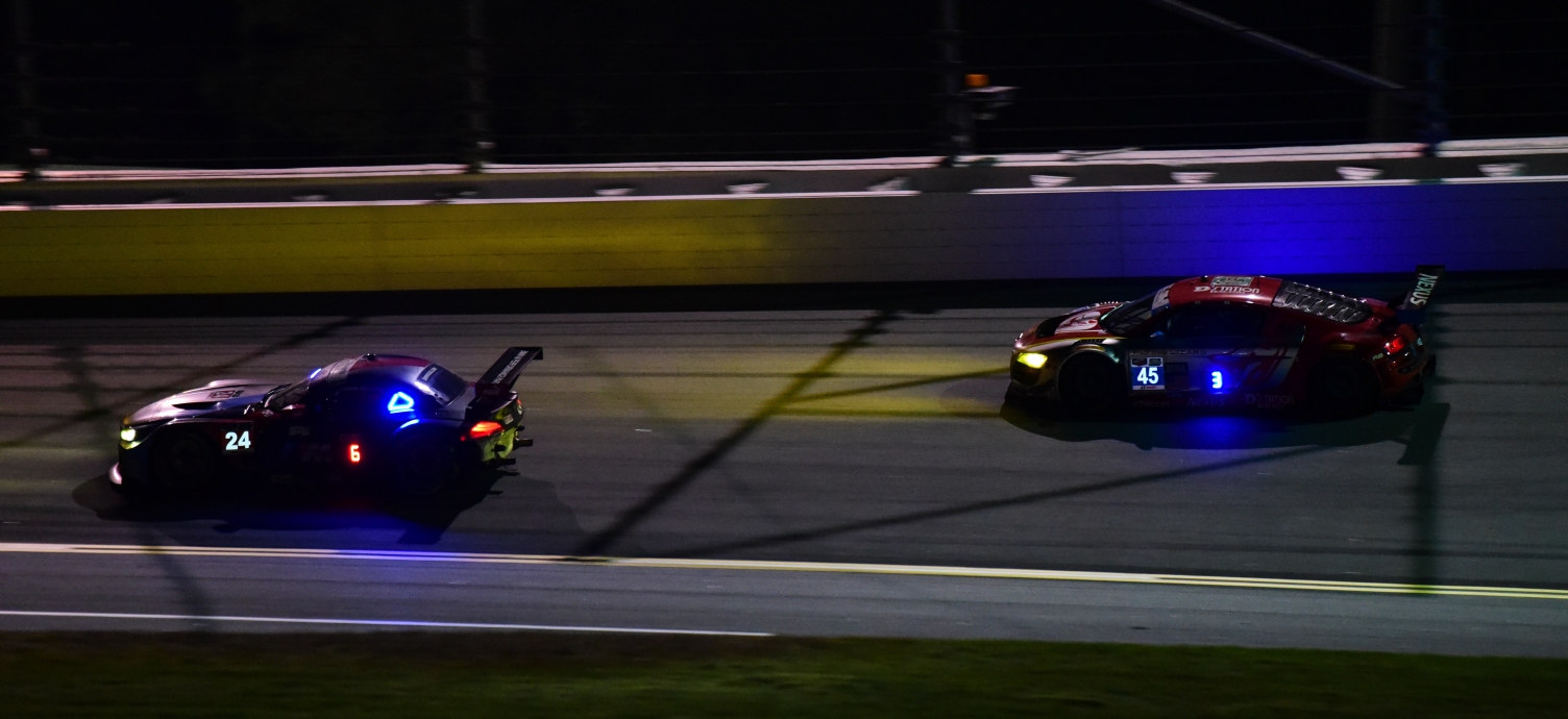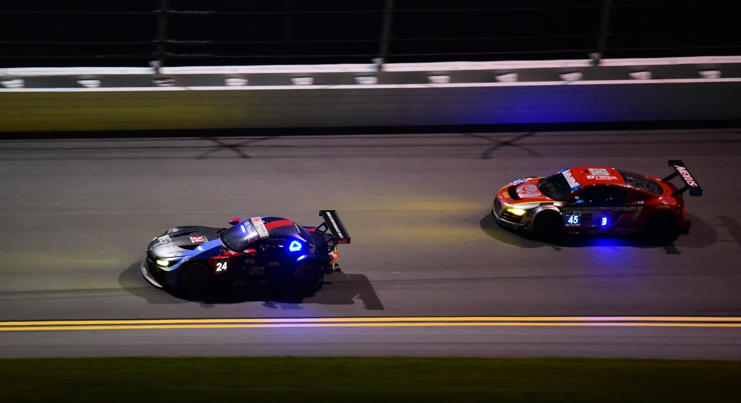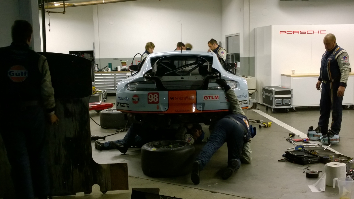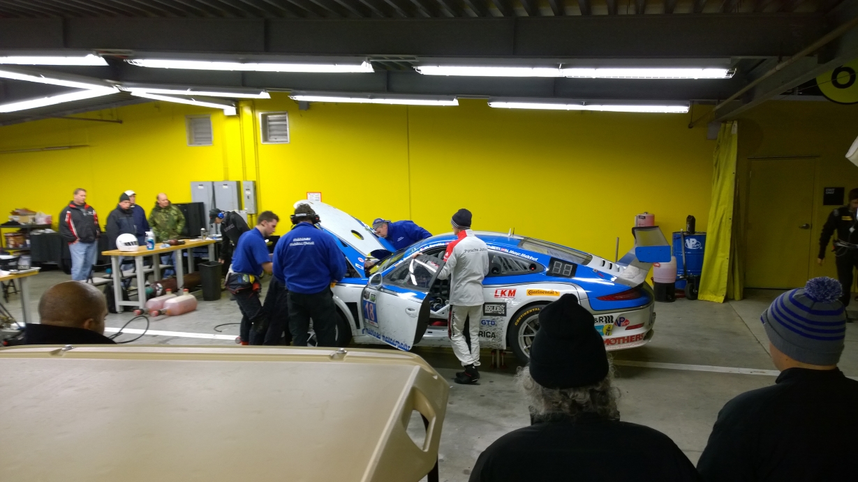Shortly after that, somewhere around 1am, the three of us decided to head to the paddock to see if any cars were in for work. Sure enough, there were a few teams hard at work repairing cars, and a couple cars covered due to terminal issues. Walking pit lane, there was plenty of action there too with teams filling up fueling rigs, getting misc parts together, and preparing for pit stops. These shots are another example of how much of a team sport this really is. There’s also one in here taken just before the Paul Miller Racing guys did a driver change, with Christopher Haase standing on the pit wall in full gear waiting for their Audi R8 to make its way to the pits.