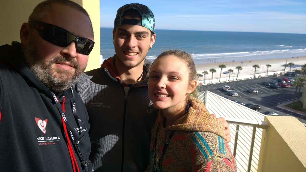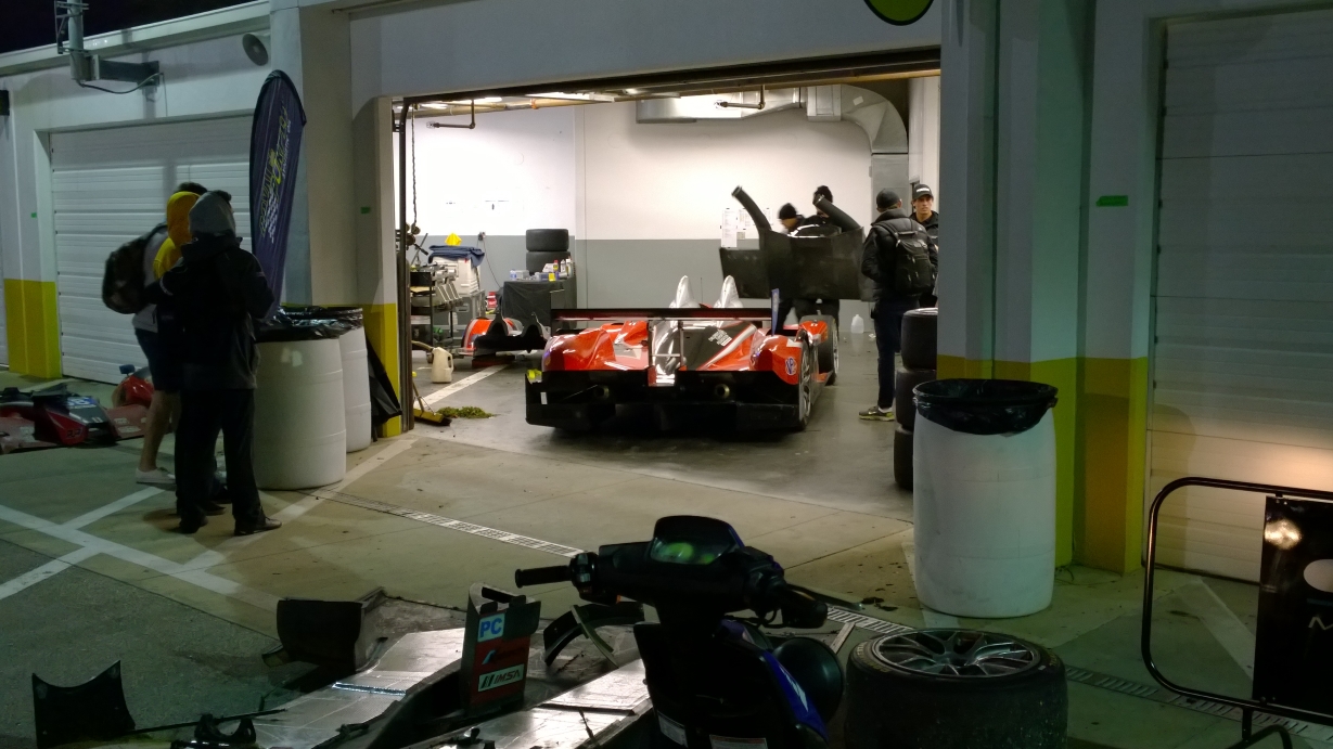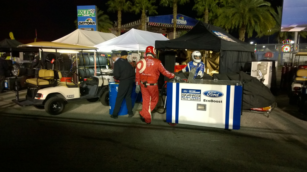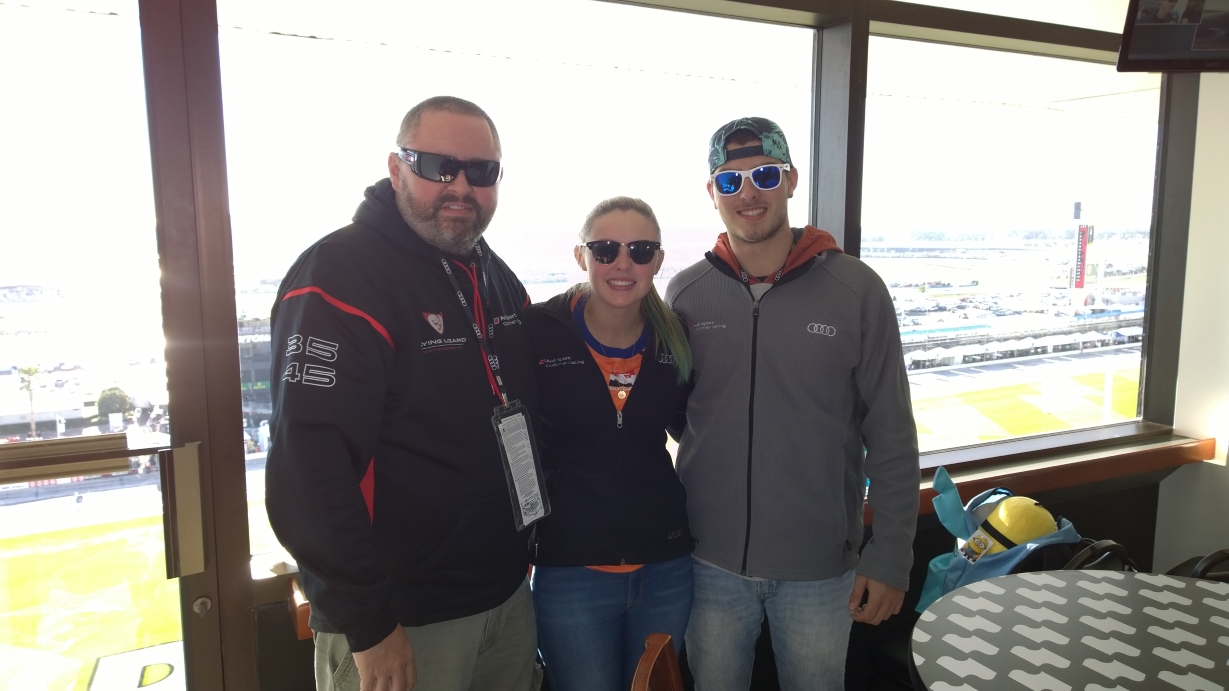 With our midnight Ferris wheel ride over, we decided to rest in the Audi Boardwalk Club for a few minutes before walking the paddock and pits. When we walked in and sat down, there was only one other table of people in there. It took all of 2 minutes for Bayley and I to realize who two of them were; Conor Daly and James Hinchcliffe. Hinch was at the 24 as a co-driver on the #70 SpeedSource Mazda, and as mentioned in the previous post, their race had ended a little earlier with an oil pump failure. We’re both big fans of the Mayor of Hinchtown, so it was cool to walk in to that. I’m not one to bother someone (regardless of who it is) while they’re hanging out and relaxing, so we just sat and rested for a few. At one point, Hinch got up and walked past us, so I went ahead and asked if we could get a pic with him and Bayley, and as usual (he’s one of the most fan-friendly IndyCar drivers), he was happy to oblige:
