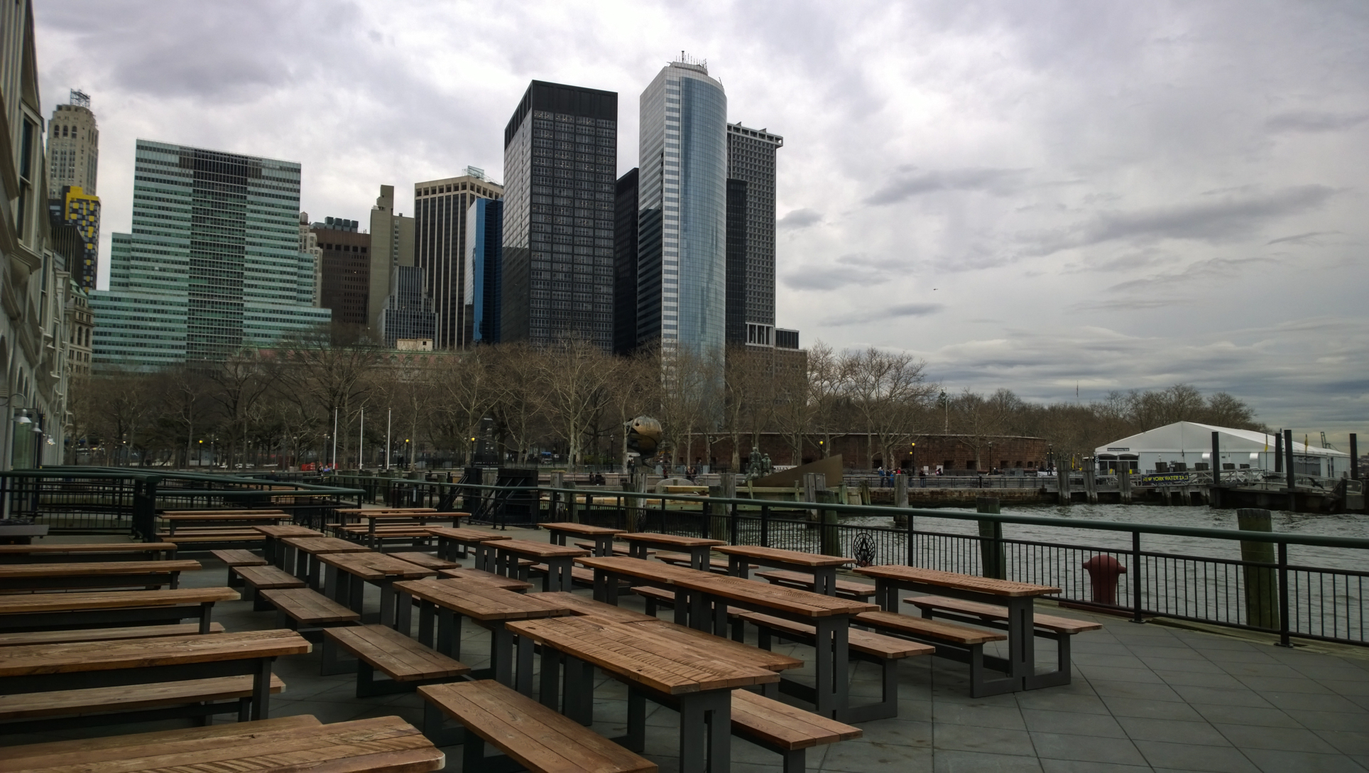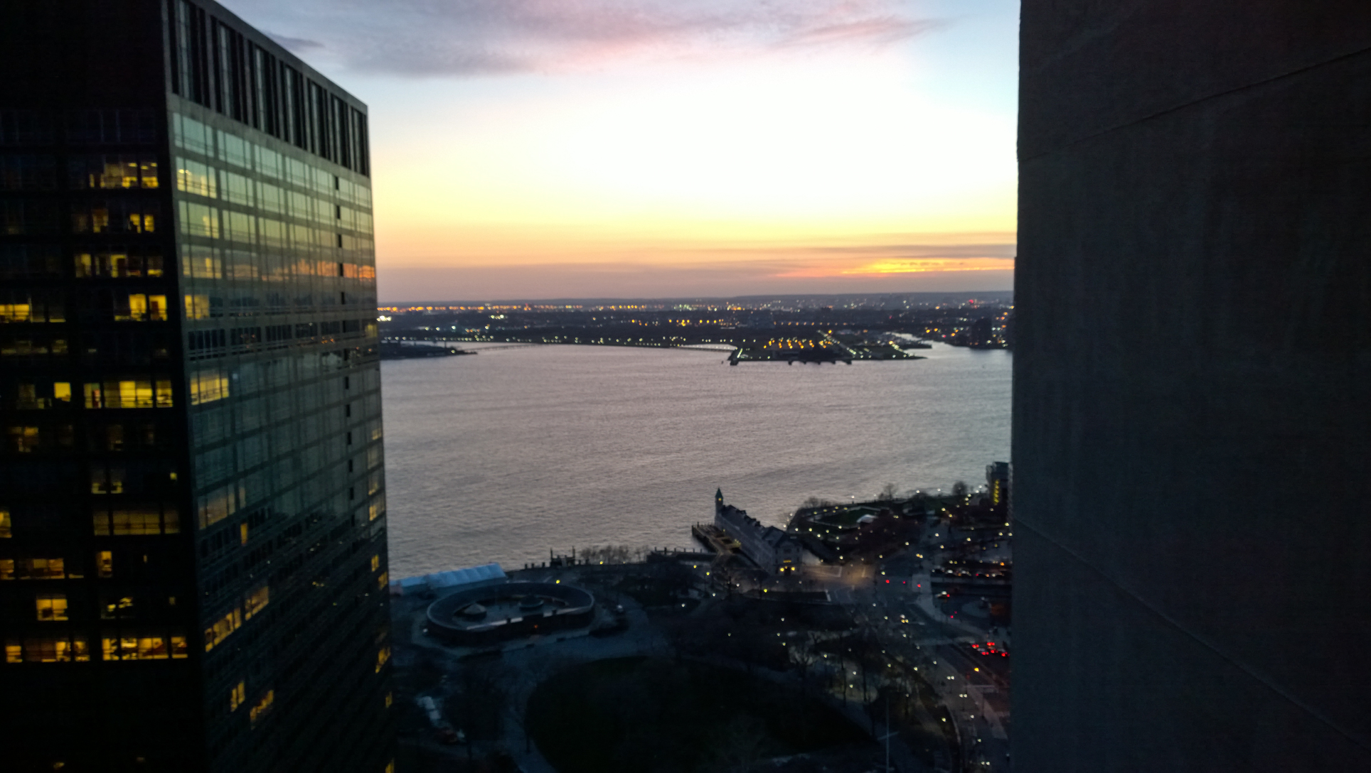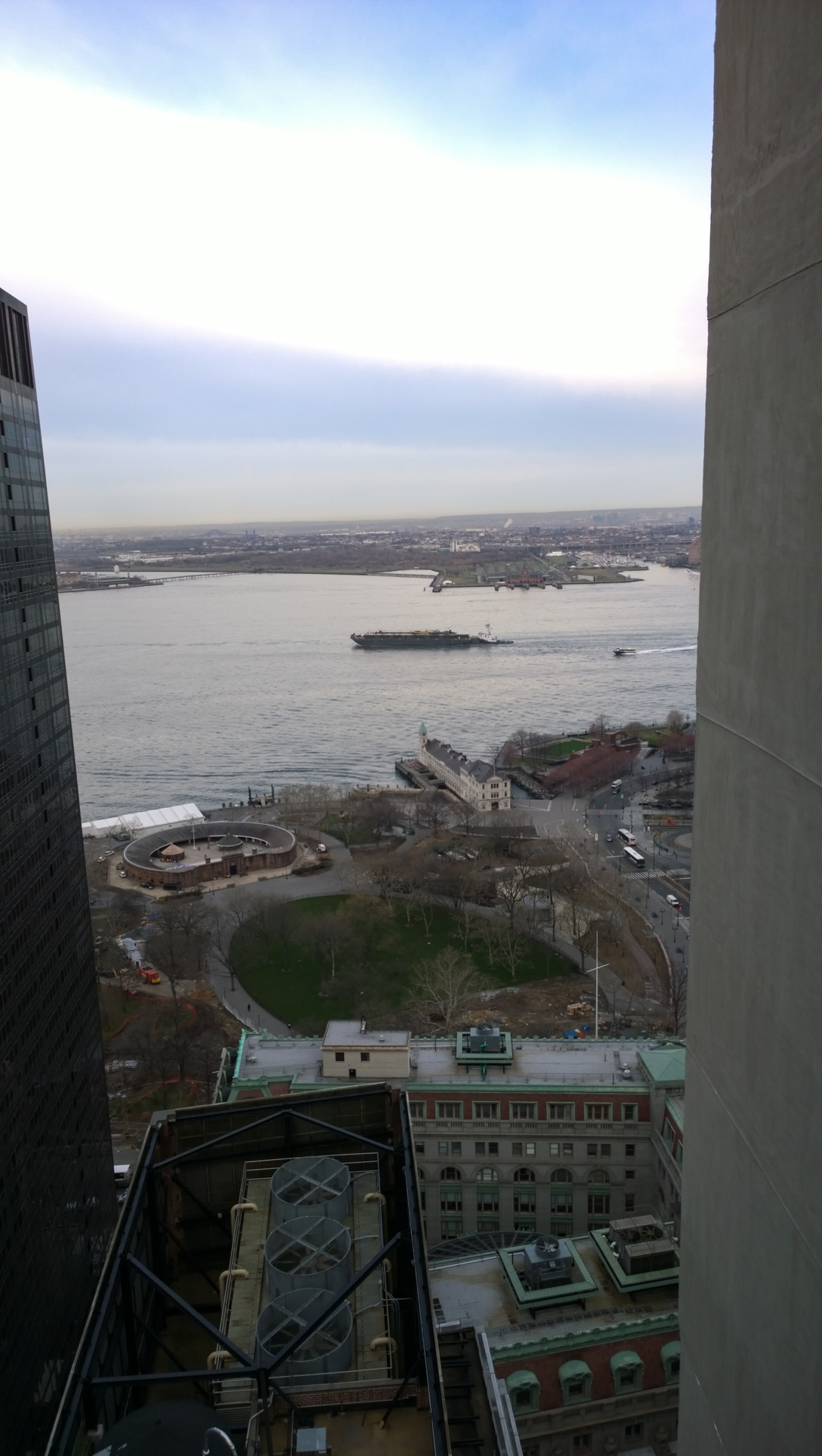 The room itself was fine, albeit the normal tiny NYC hotel room size (smaller than I expected for something labeled “deluxe”). The view was pretty good, looking out over Battery Park with a view of the river. Some shots of the room: