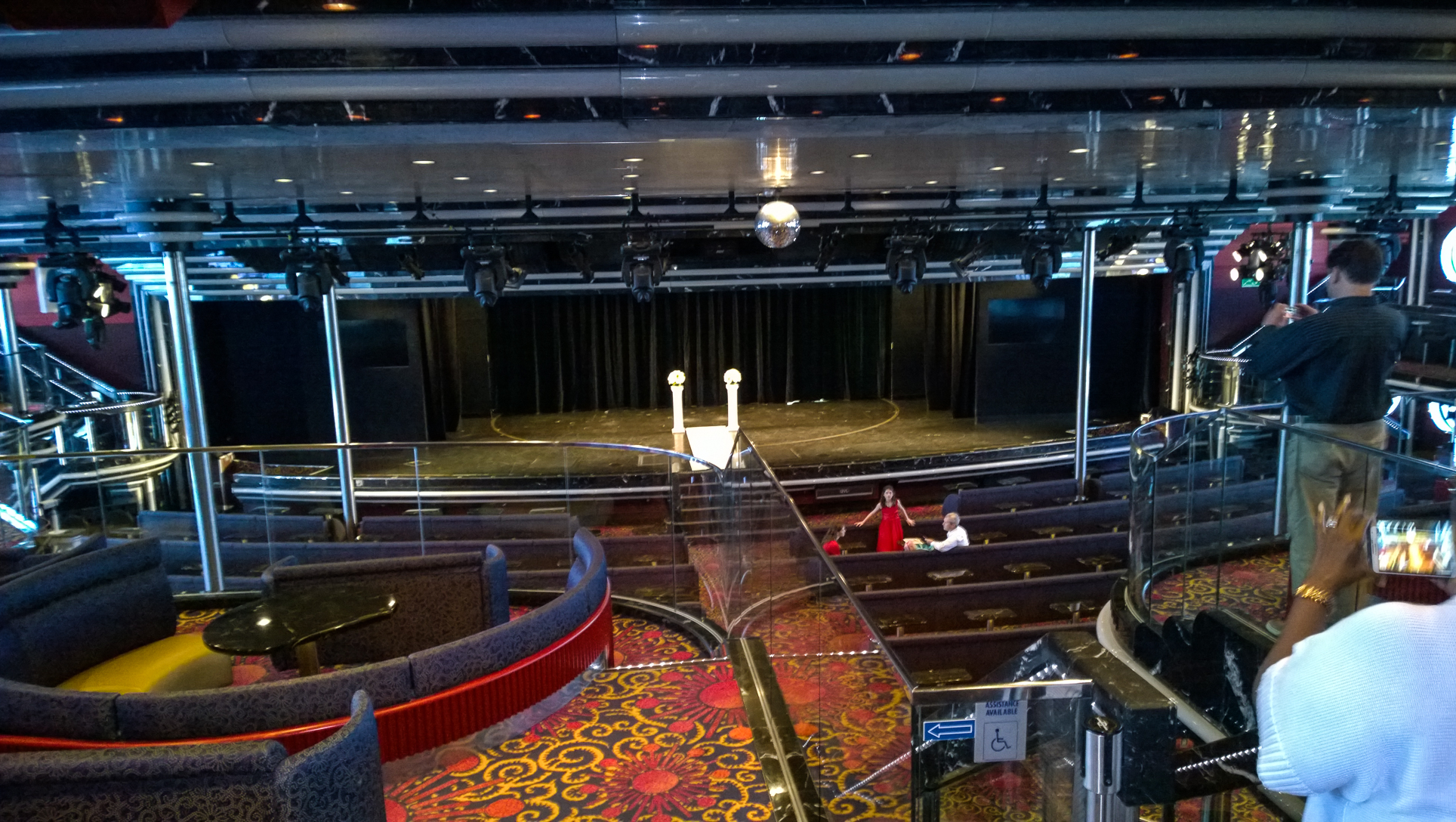 Due to our time constraints, those were all the rooms we got to see. After finishing there, we were guided around a few other areas as we headed in the direction of the dining room for our lunch. Here are some shots of different areas we saw along the way, including: the show lounge, casino, a couple of bars, the kid’s club, and the Forum Aft Lounge, where they were setting up to host a wedding reception:
