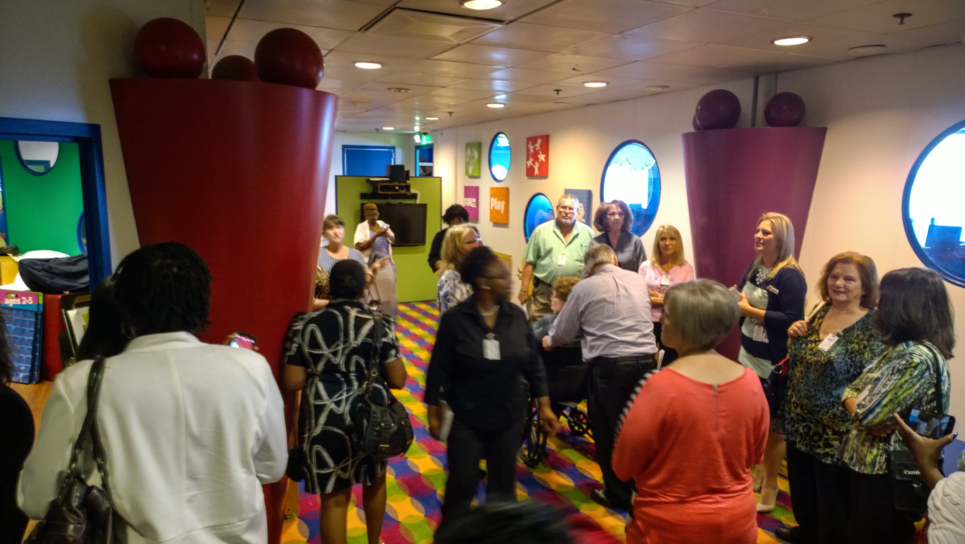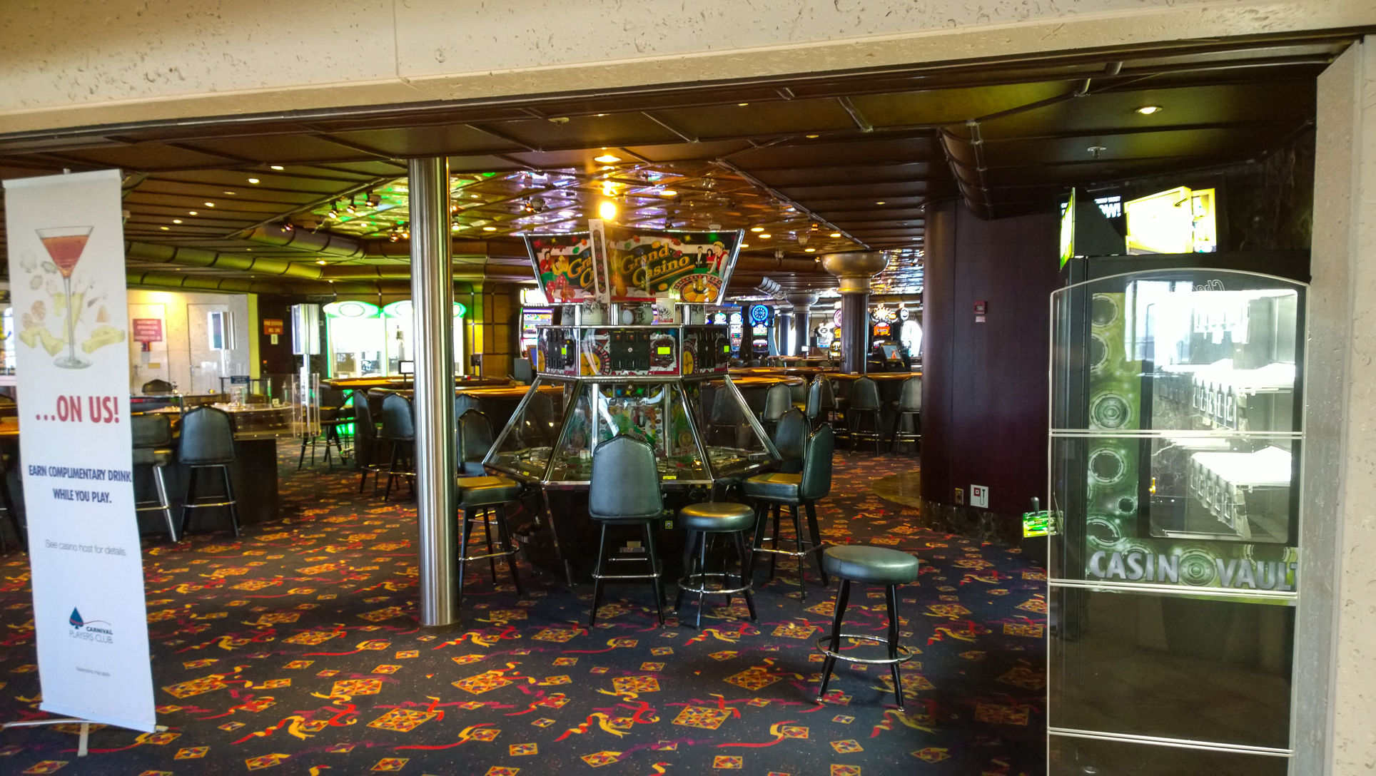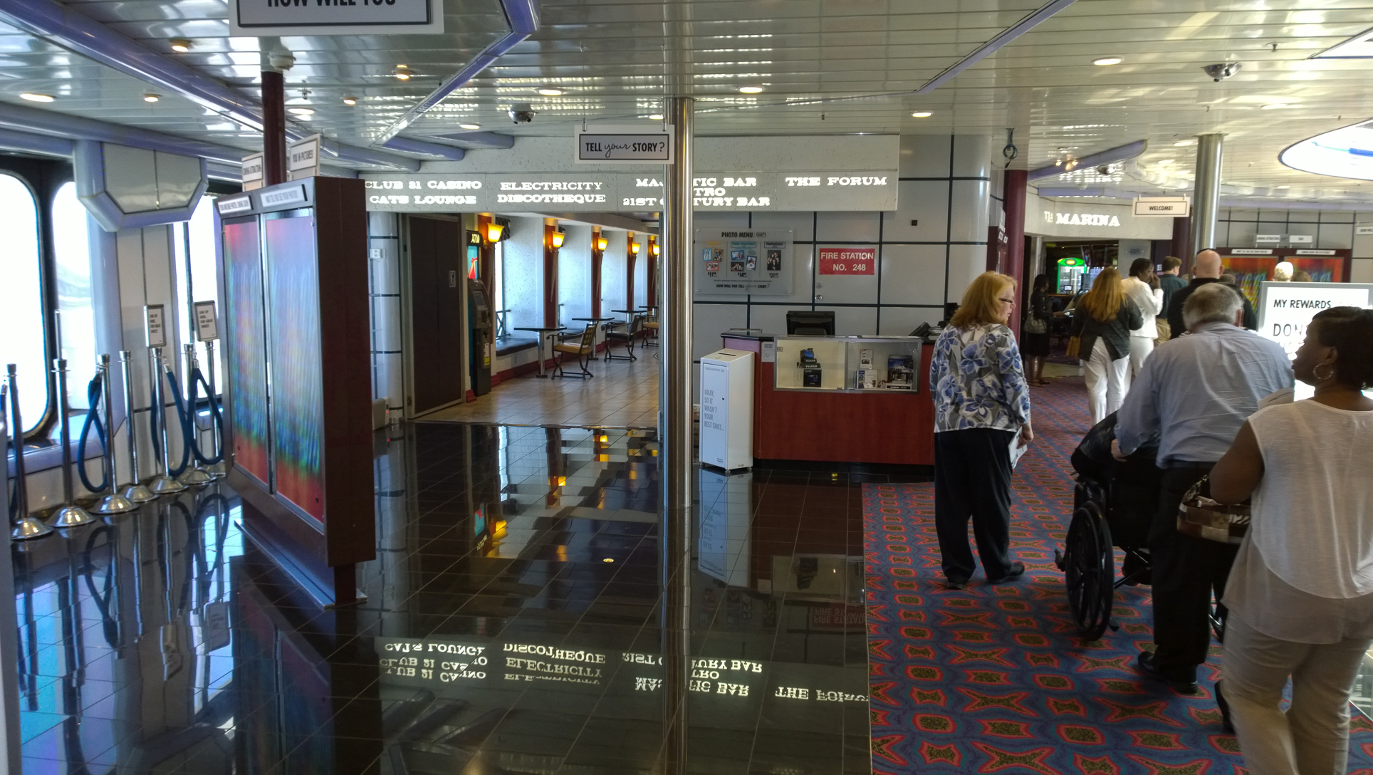 One of the things that we do as travel agents is the occasional cruise ship inspection. As mentioned in my post back in October after we toured the NCL Getaway, this is generally a 3 hour tour of the ship, hosted by a rep or two from the cruise line, and it’s intended to give us an idea of what our clients can expect should we book them on the ship. This is my second ship tour, and my wife’s fourth, as she did two more while down in Ft Lauderdale for Cruise3sixty a couple of weeks ago. For this one, we were getting a look at the Carnival Fantasy, the only ship from any line currently based out of Charleston, SC. She’s an older ship, having launched in early 1990, but the last refurbishment has her in pretty good shape. The decor is pretty standard for other older ships we’ve been on, too. Overall, we were pleasantly surprised at how well the Fantasy has been kept up. Let’s take a closer look…