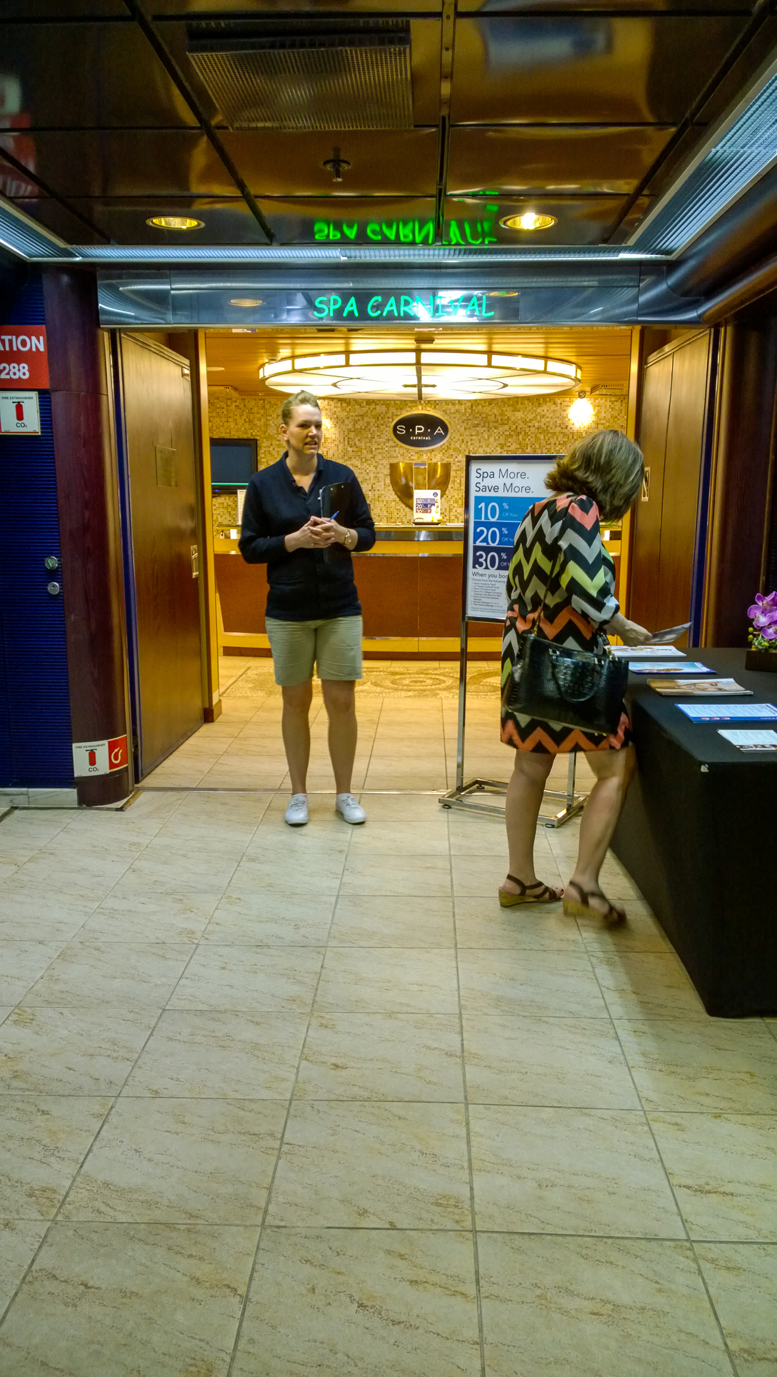 Once we finished our walk-through of the spa we were out of time, so we headed down to deck 3, gave our passes back, and sadly left the ship. All in all it was a good tour, and left us with a pretty solid impression of the Fantasy. As mentioned, Carnival has done a really good job with upkeep. Is it small? Yes. Are you limited in room types? Yes. It’s not the Dream or the Breeze, but it’s still a worthy option, especially if you’re looking to cruise out of an east coast port outside of Florida. It’s only three hours from us, so I personally would like to give the ship a shot in the near future if we can carve out some time.