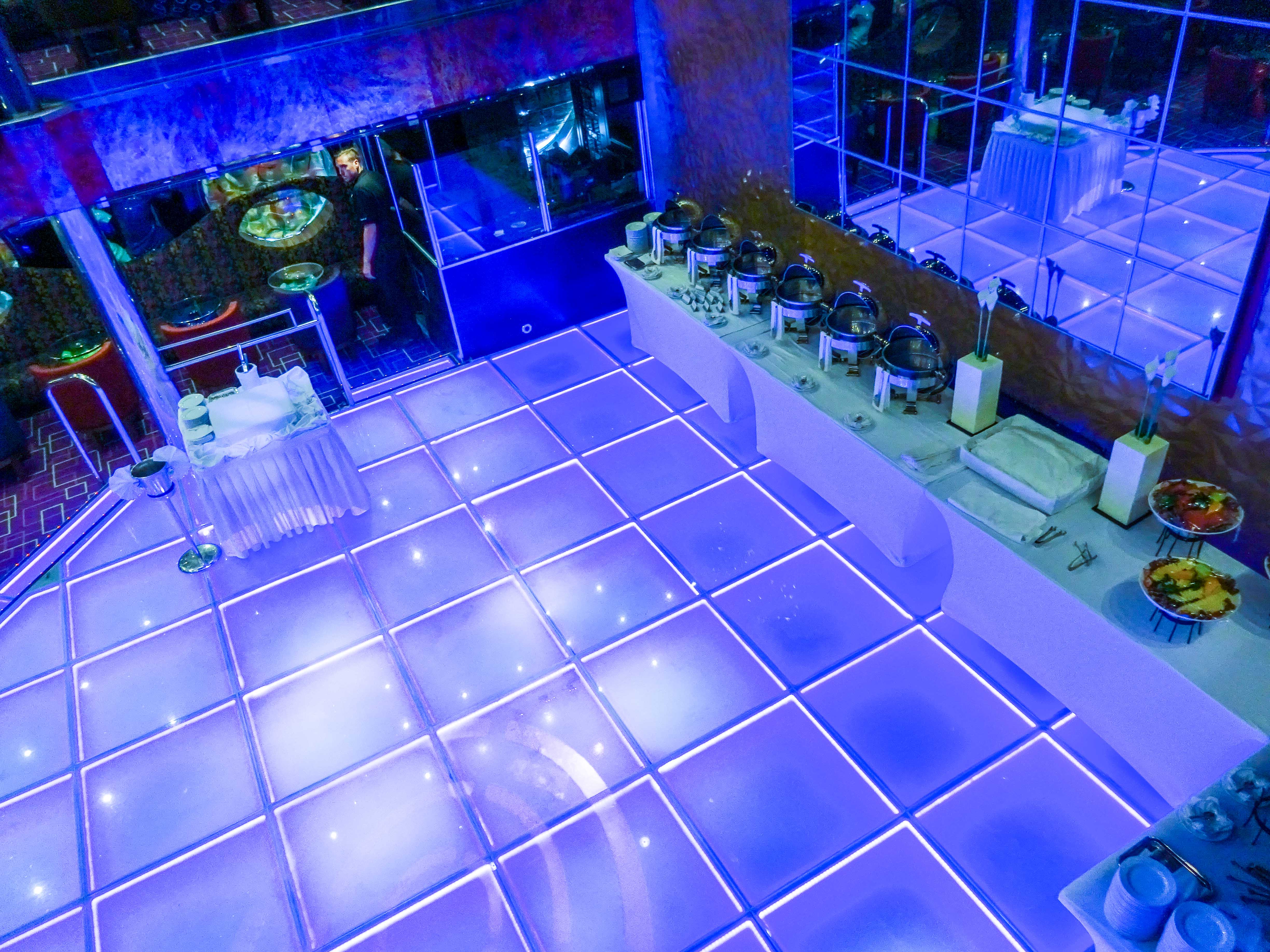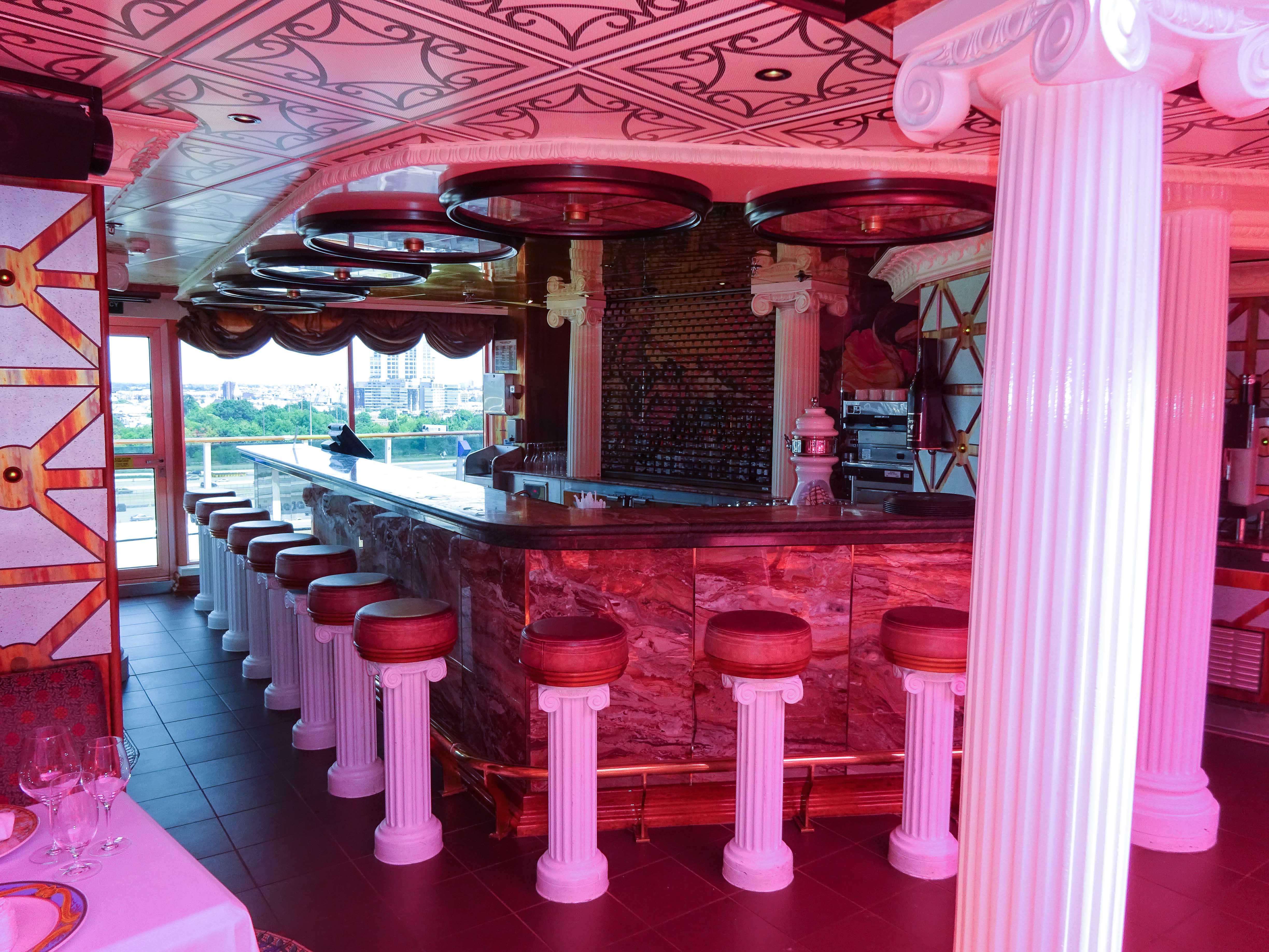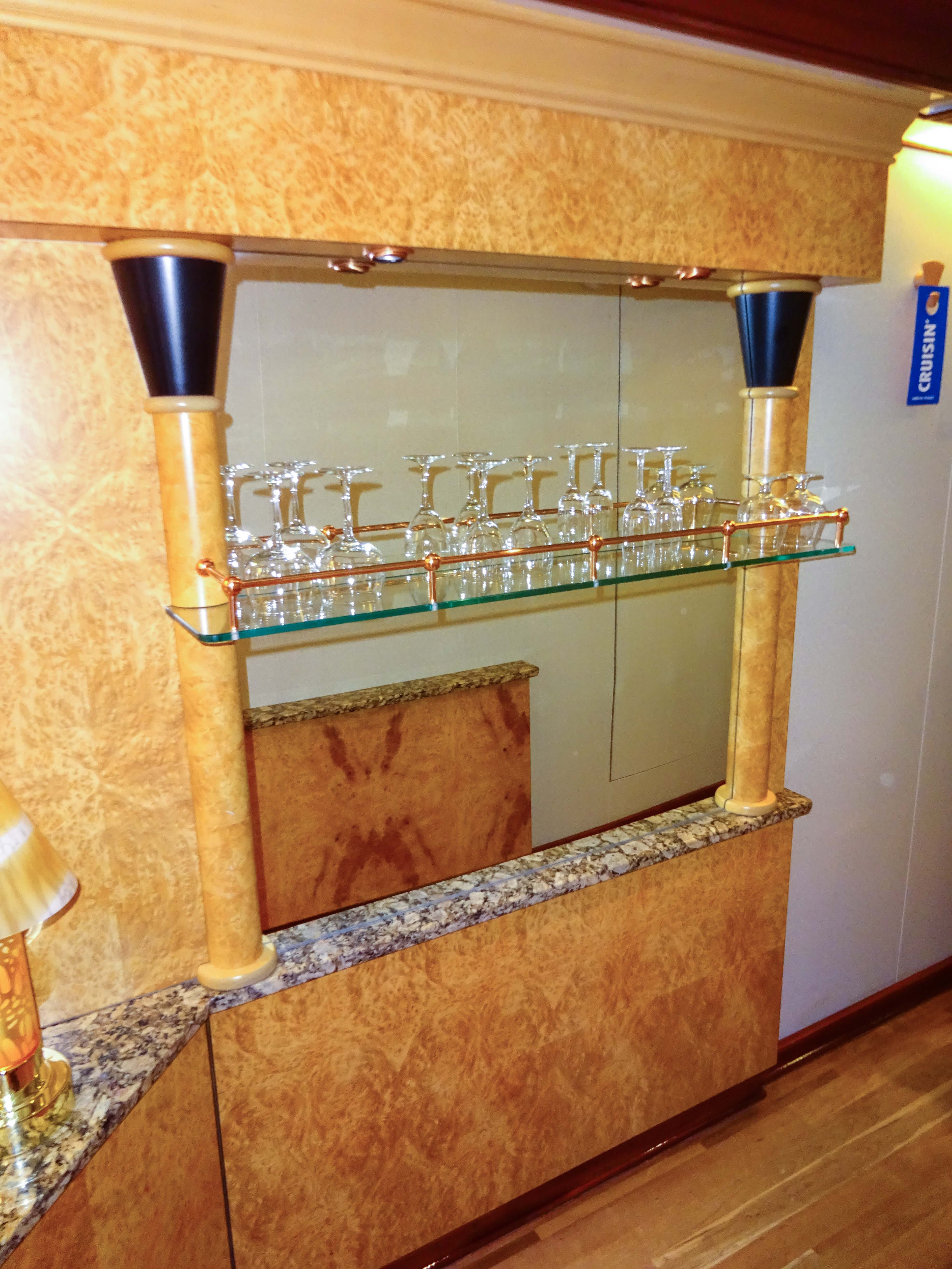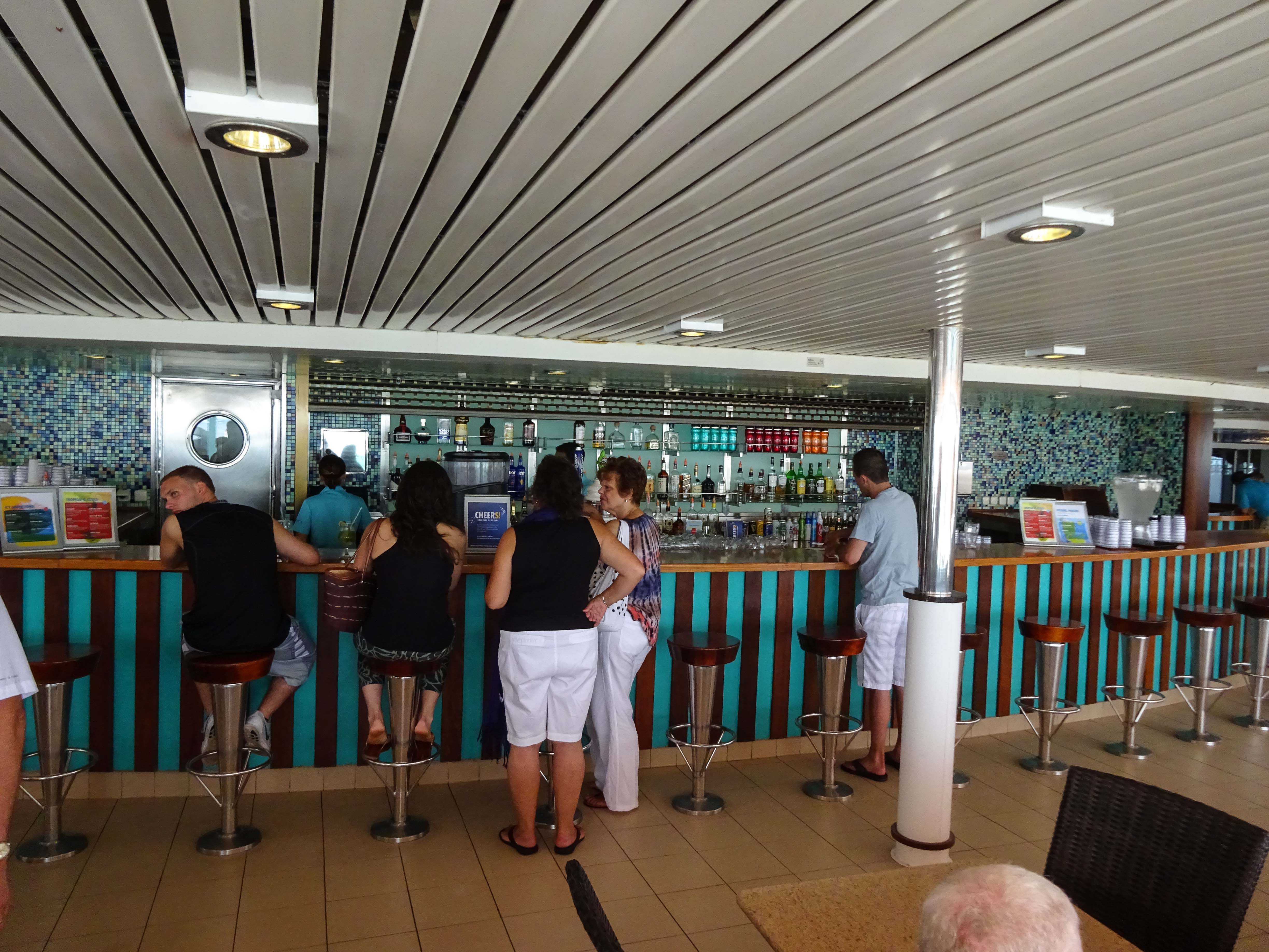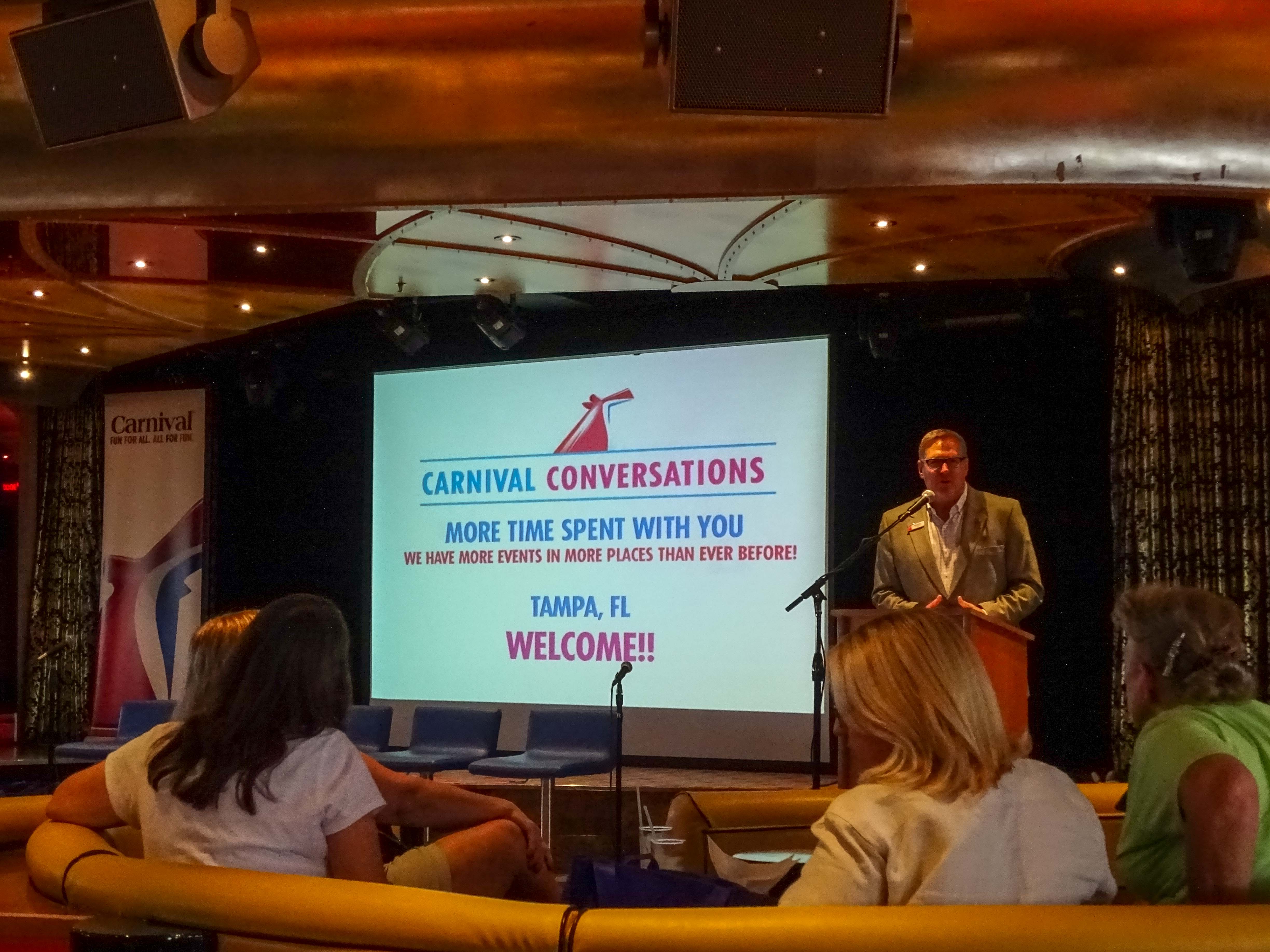 - The Ship: Yes, there is some bad here, too. Namely the main theater, which seems smaller than the Breeze. I assume Carnival was seeing a lot of empty seats in other ships in this class and as a result shrunk the theater, but the resulting design is just horrible. Really bad sight-lines throughout, rows in the back that sit lower than the row in front of them, and an odd center setup that’s totally flat (with non-permanent chairs) result in a place I really couldn’t stand to watch a show. The Divina showed us it is possible to build a large theater without things blocking your view, so what I saw in the Liquid Lounge was just mind boggling. Don’t even get me started on the useless cup tray permanently attached to every other armrest. Too slick to actually hold cups, yet totally uncomfortable for resting your arm on. Another ship design problem was the entrance to the Reflections dining room. Both sides are way too small, so the cattle-call queuing that happens prior to the MDR opening results in everyone standing even closer together. On the plus side, if you come in mid-ship, you can stare at the main DreamScape :).