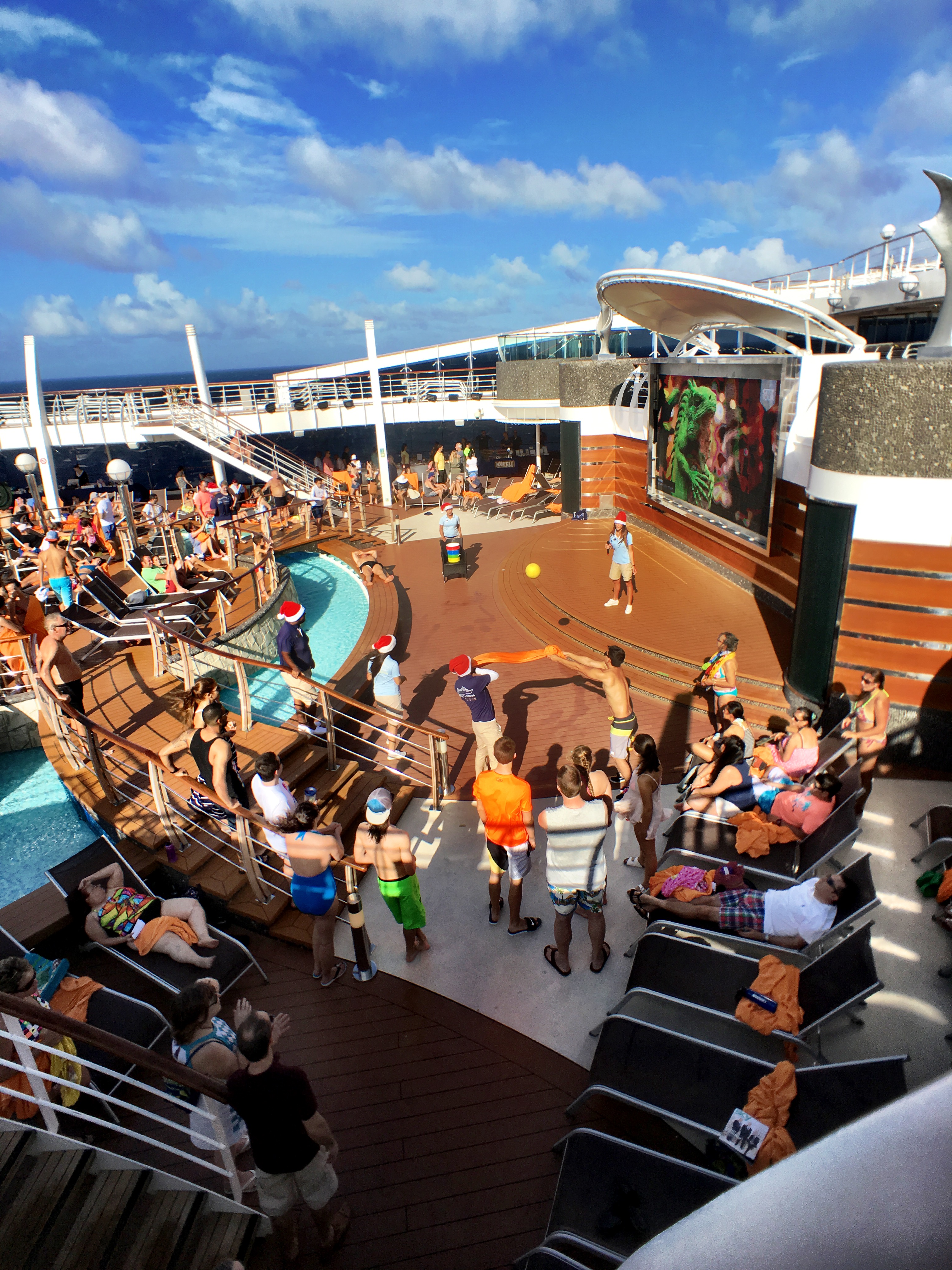 - Outside space, especially around the main pool, is more plentiful. Here are comparison of shots I took of the main pool area on the Escape and Bliss to illustrate what I mean (Escape on the left):