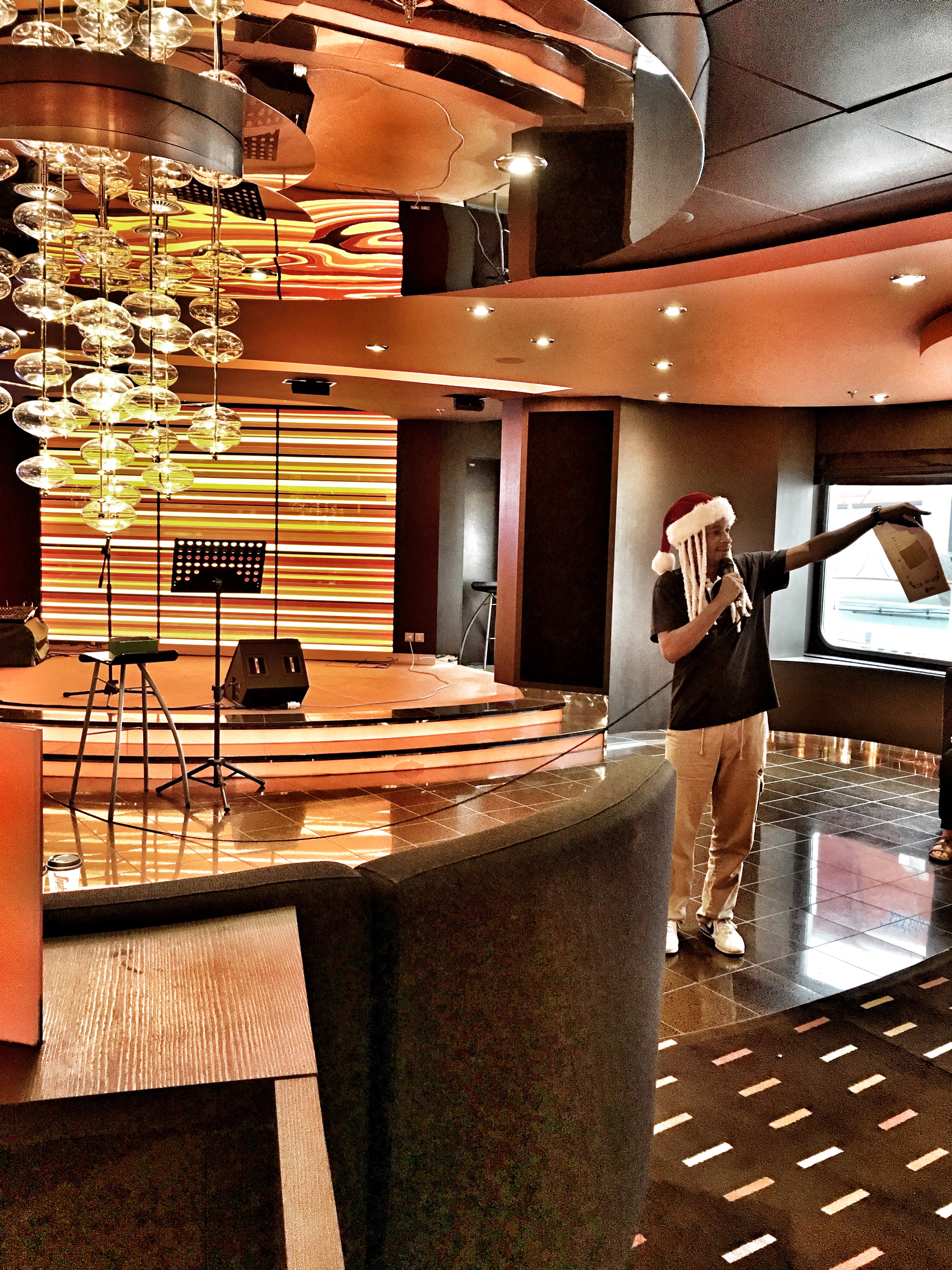 Now before we get to the fun stuff, like go-karts and water slides, let’s talk about the staff. I’m sure they were told that there were going to be a thousand travel agents, along with executives from NCL and other lines onboard, but even so, they were awesome all week. Again, we didn’t get to interact with them as much as we would normally, but when we did, we always got smiles, a “how’s your day”, and all out good attitudes from them. I walked around one my own a bit without anything identifying that I was part of the group, and there was no change in attitude. Additional little things, like the always-happy attitude on the guys at the buffet doors ensuring people were sanitizing (the “washy washy” guys) and the girls walking around Taste and Savor at breakfast handing out additional little treats while brightening your day with a song were awesome touches. If you were on the ship and don’t know what I’m referring to, you missed out! Fortunately, some friends of ours managed to get it on video!