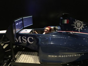 After the show and another round of bingo, we headed up to the F1 simulator so that Bayley and I could give it a go. That thing is definitely harder than it looks, but it’s an absolute blast! I was trying to be fully technical with it, focusing on shift points, corner apex, etc, and just kept missing corners and spinning. Bayley drove around the track in 7th gear one lap and easily beat my best time. Grrr…. It’s really fun though 🙂